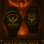 – Smoke-black dial with gold flame at 12 o’clock